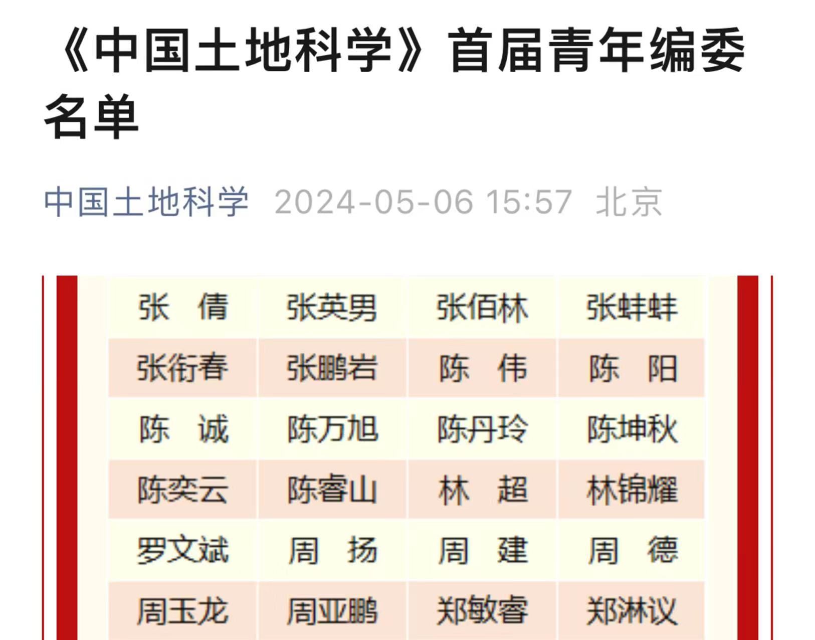 5月6日《中国土地科学》编辑部公布首届青年编委名单,小宝影院