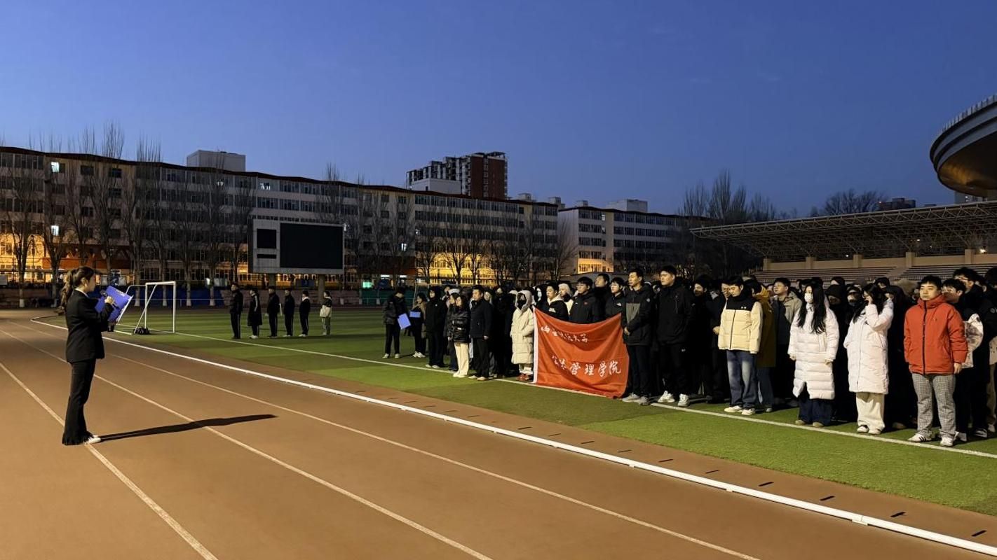 于坞城校区操场隆重举行升旗仪式。学院领导、全体辅导员及在校生共同参与,仪式由2023级劳动与社会保障班武悦同学主持。