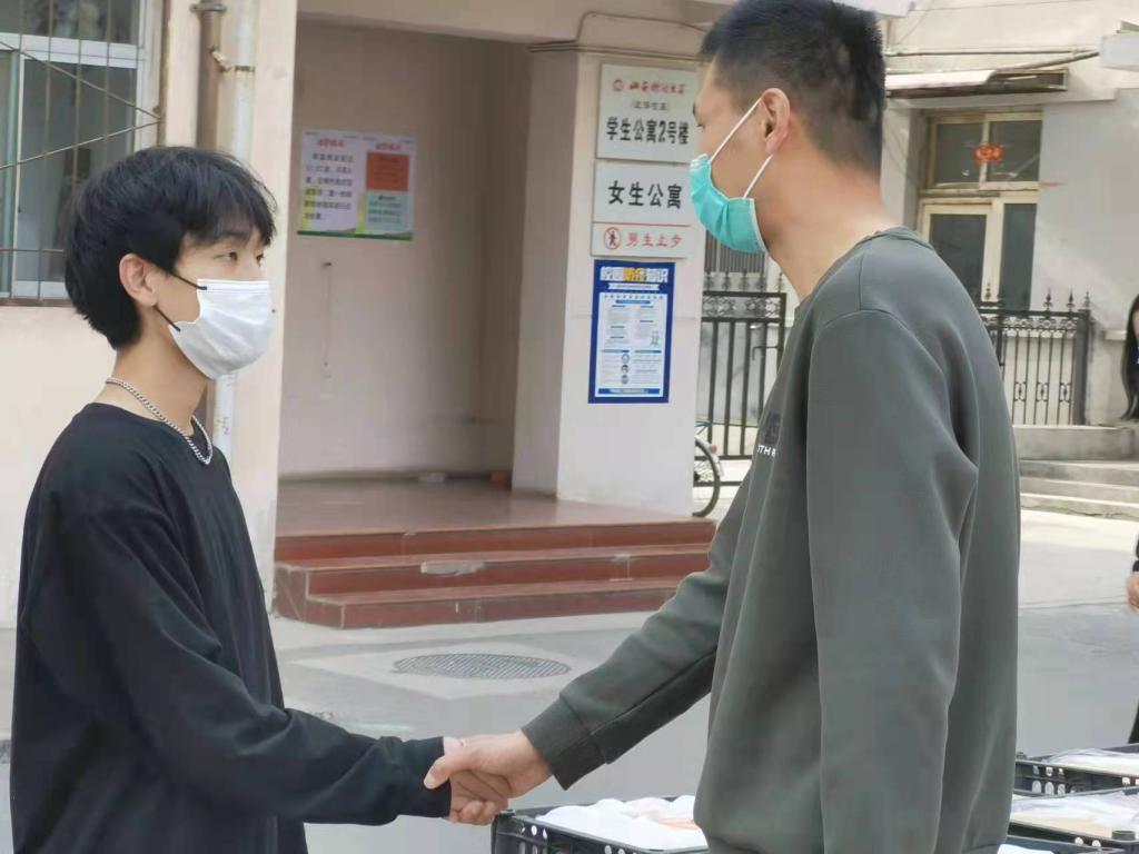 迎泽校区现场辅导员张凯老师代表学院向王程同学及家长表示诚挚的感谢。在疫情防控的特殊时期,王程同学能够心怀大爱,关注和关心着同学们的生活,是对学院的信任,对学校防控工作的支持,我们有信心家校合力,共克时艰!