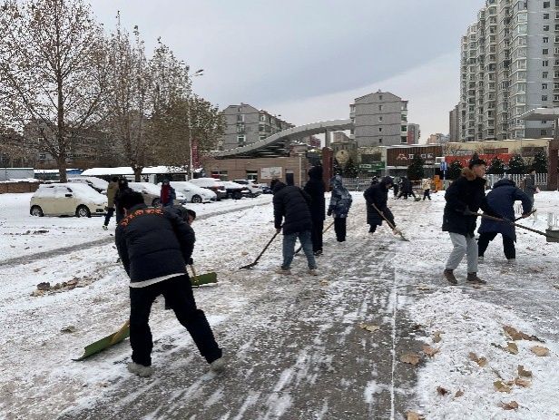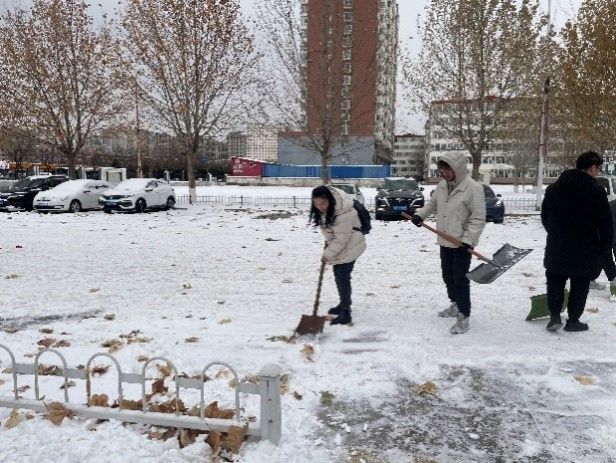 师生开辟出一条条安全的路径。在此过程中,同志们满怀热情,自由组合,齐心协力,充满干劲,以极高的效率出色地完成了除雪任务。在热火朝天的劳动中,大家不畏严寒,奋勇向前,争当先锋模范的带头兵,在深耕奉献精神的过程中,充分发挥中国共产党乐于奉献、服务群众的优良传统,发扬党全心全意为人民服务的宗旨。