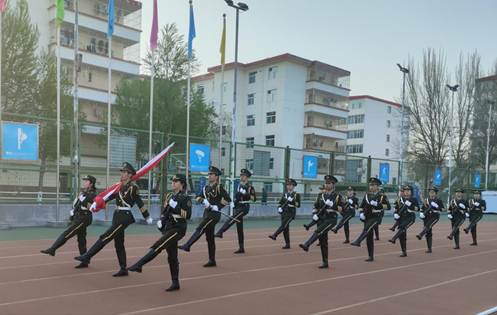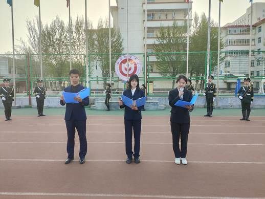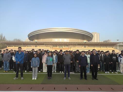 于2025年4月7日在坞城校区操场举行新学期升旗仪式,学院领导、全体辅导员、全体在校生参加,2023级行政管理班靳晶晶同学主持。
