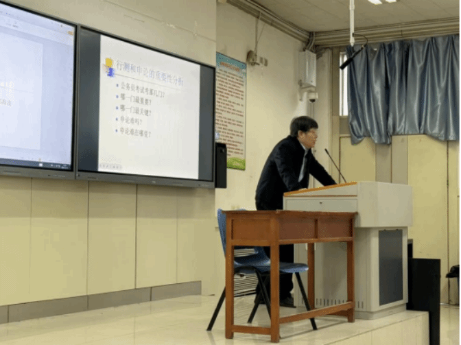 整场讲座紧扣公考实战需求,既解析了申论考试的命题逻辑与评分机制,也传递了科学备考的核心原则。通过具体示例与实用技巧分享,帮助考生进一步明晰备考方向,加深对公务员考试的系统认知,为后续备考规划与能力提升提供了有力指导。讲座传递的“科学备考、复盘反思”理念,与模拟大赛“实战赋能,破局突围”的目标形成互补。让大赛不仅是 “模拟体验”,更成为衔接讲座知识、提升备考能力的关键环节。